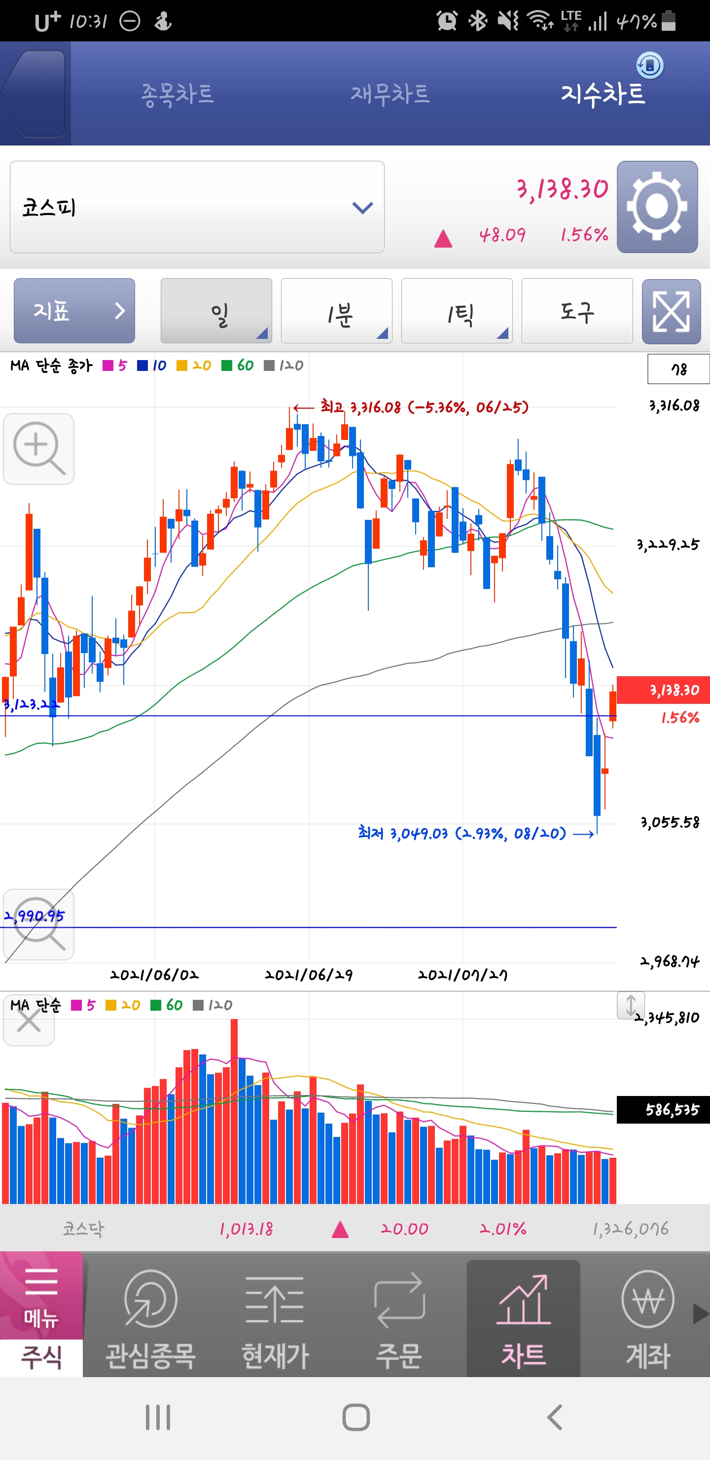 코스피가 어제 반등자리를 만들고 오늘 반등에 성공하였다. 오늘 같은 날은 정말 대부분 종목이 올랐을거 같다.