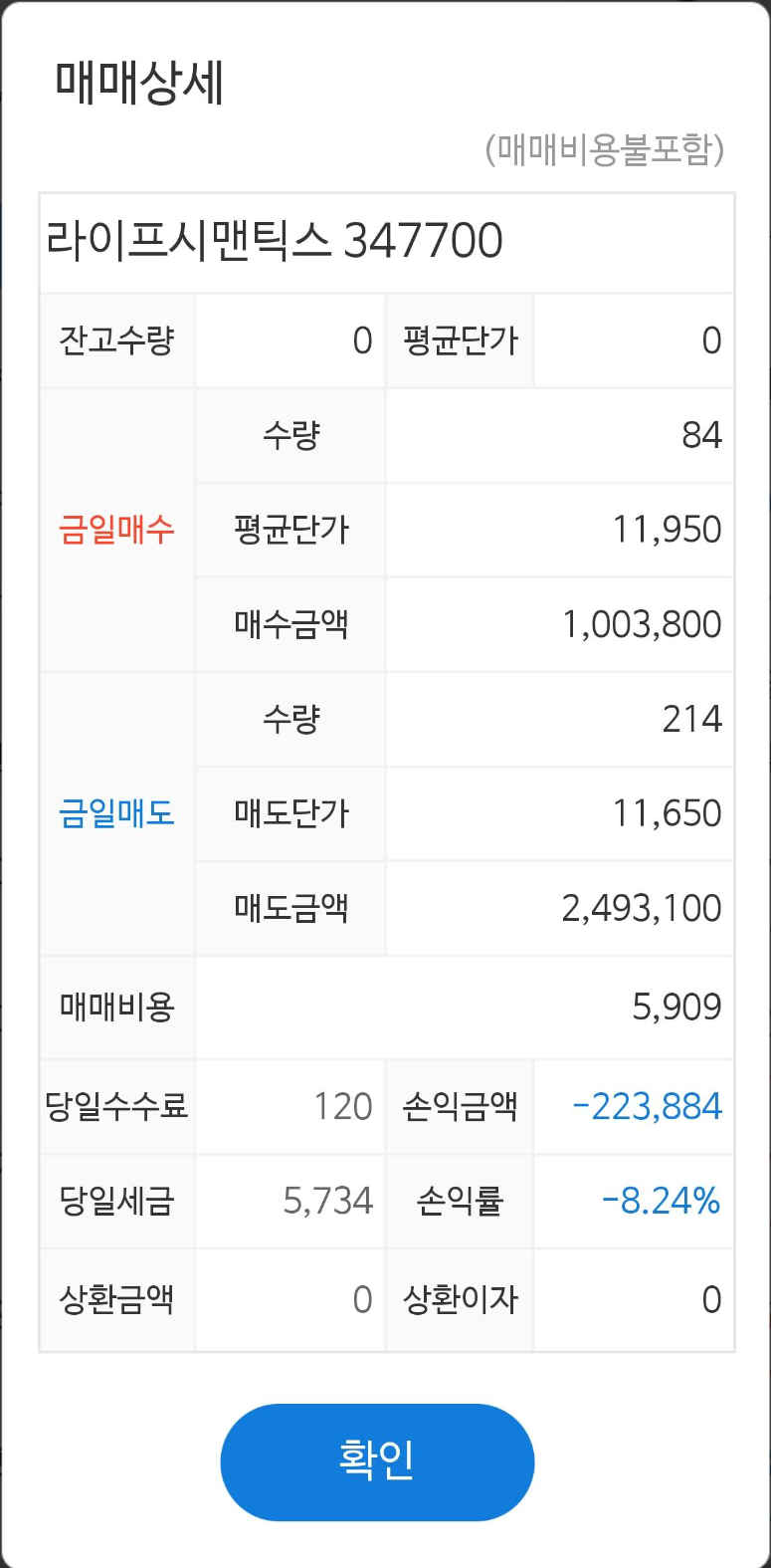 그리고 라이프시맨틱스 전량 손절하면서 고스란히 수익을 상계처리하였다. ㅠ