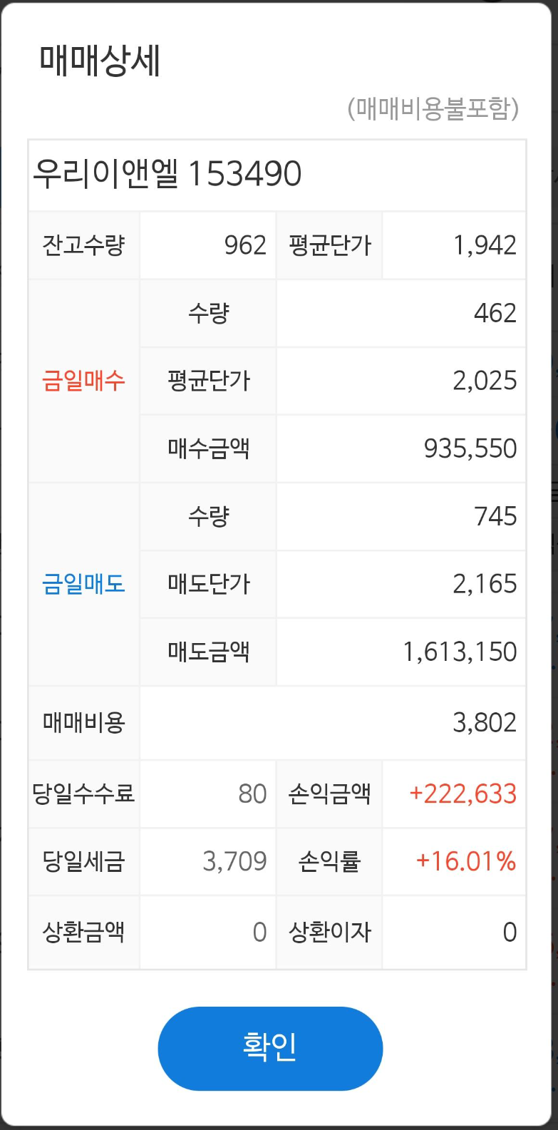 오늘은 라이프시맨틱스와 우리이앤엘 정리로 현금비중이 늘면서 공격적으로 매수를 하였다.