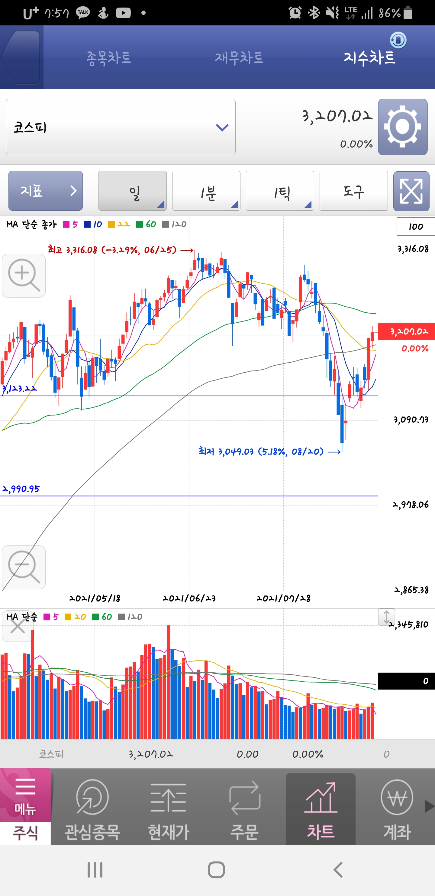 코스피는 3200을 넘기면서 흐름이좋다. 그래서 가지고 있던 종목중 인터파크 제외하고는 흐름이 좋았는데, 그동안 낙폭이 컸던 종목들이 올라온듯 하다. 미국지수도 큰이슈 없이 끝났기 때문에 오늘 코스피 폭락은 나오지 않을 확률이 높다.